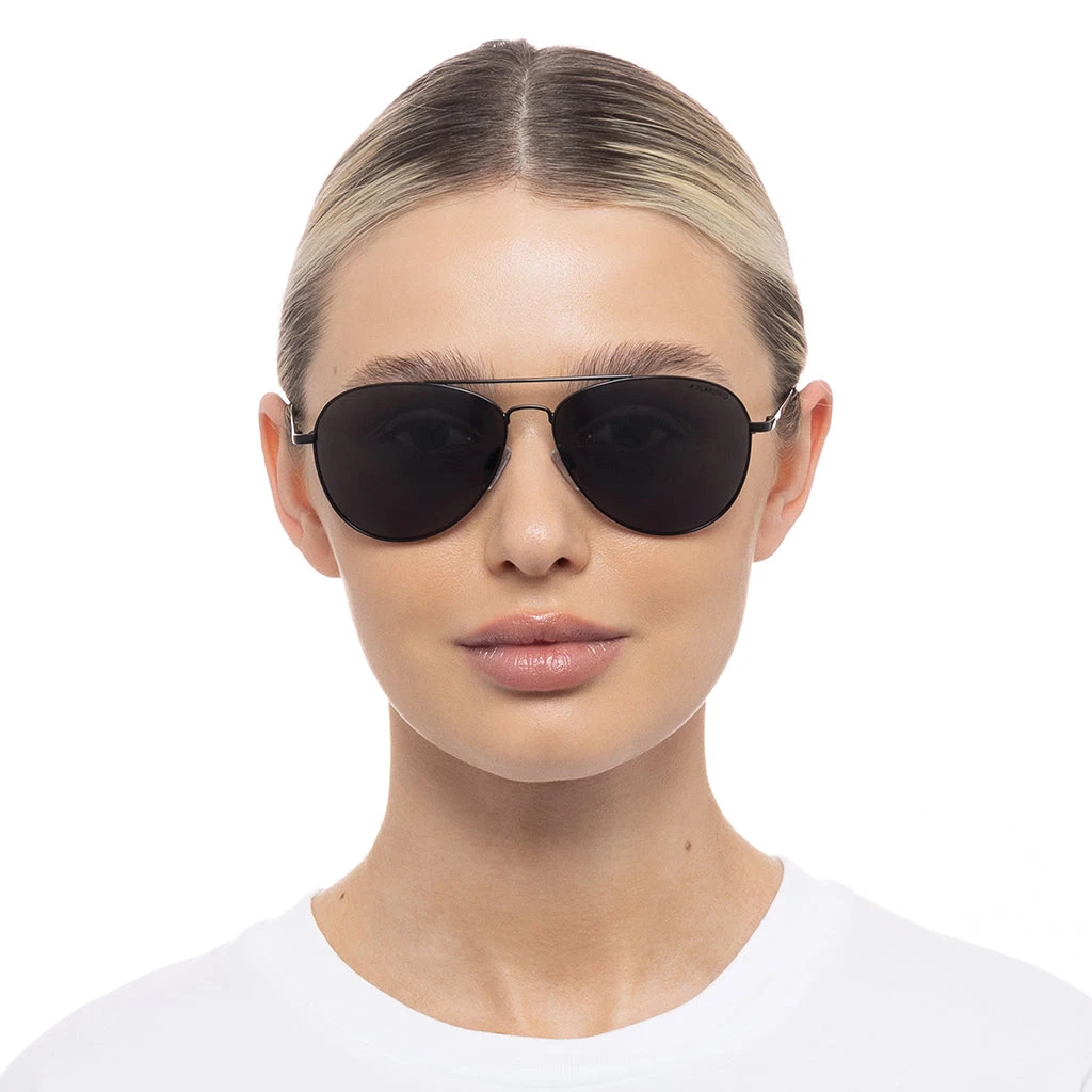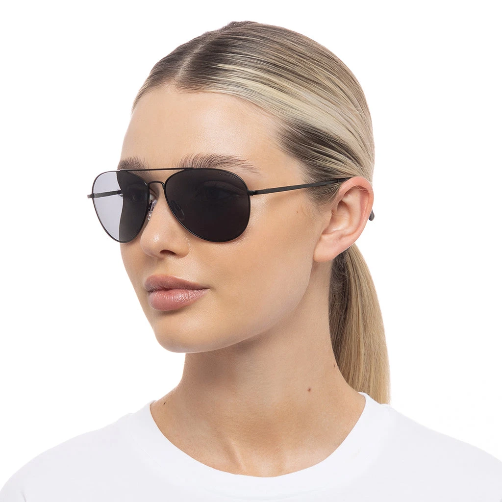 Acacia in black is a unisex traditional aviator, featuring adjustable nose pads. This style is fitted with polarised lenses for superior sun protection.