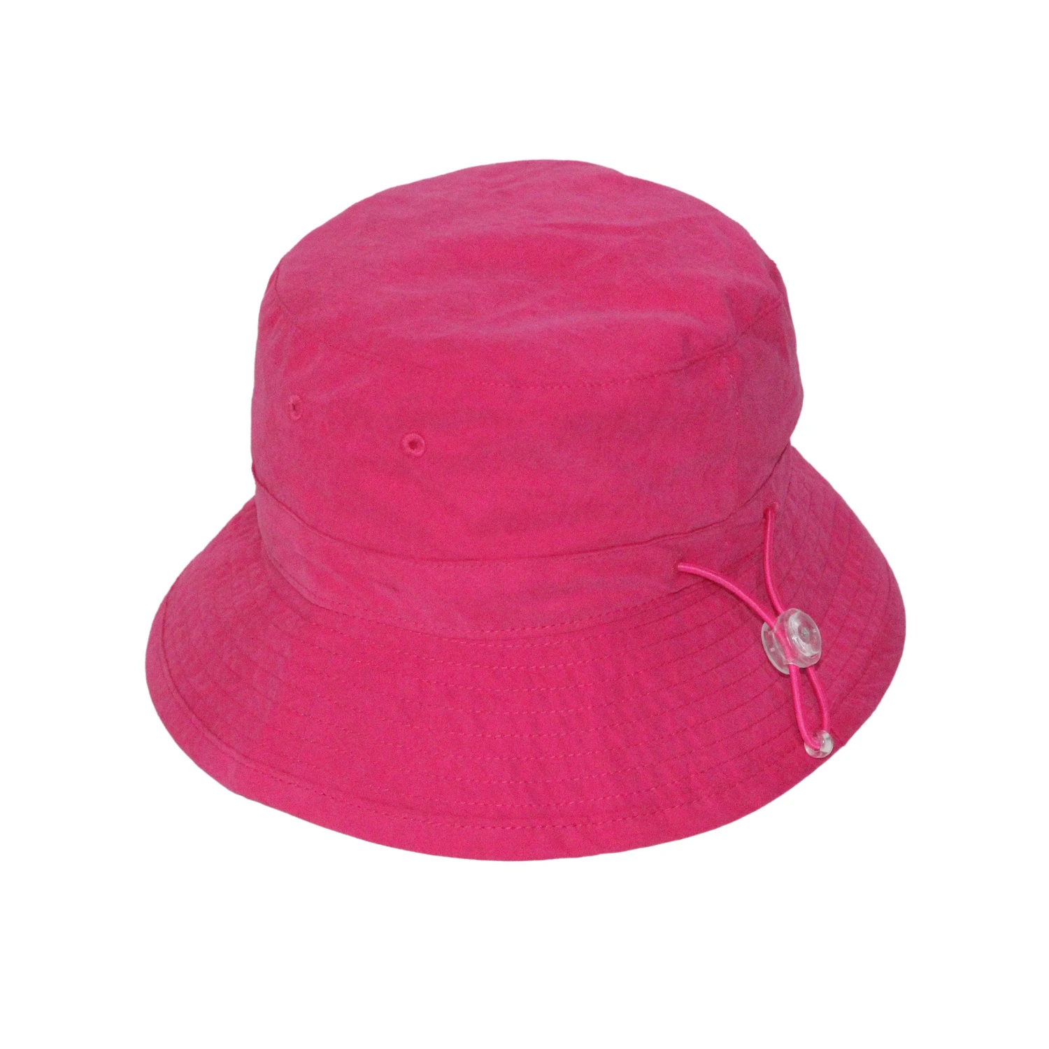 The Ardon Bucket Hat in Pink is designed for the ideal blend of protection and comfort for kids and toddlers. Its lightweight 100% cotton construction offers UPF50+ sun protection, while its adjustable drawstring and toggle provide a secure fit and breathability.
