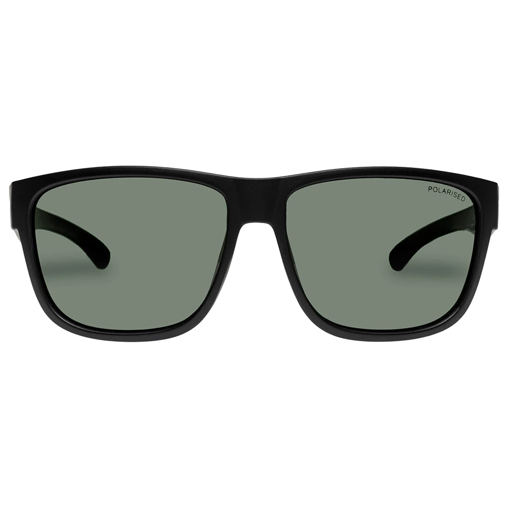 Boorabbin is a best selling mens modern rectangle style. This shape features wide temples, designed for comfort and superior fit. Boorabbin in matte black is fitted with green polarised lenses for high protection against sun glare.Â