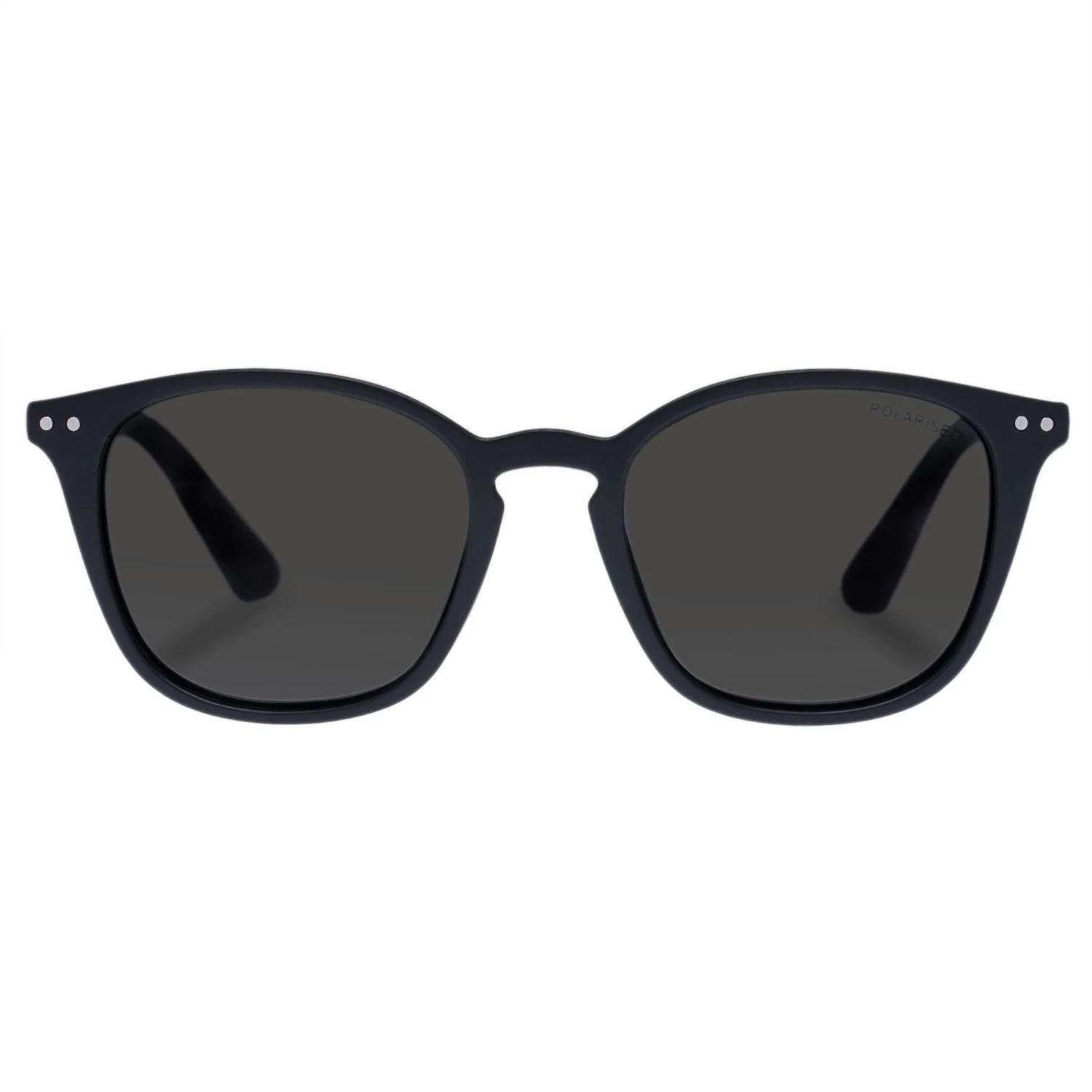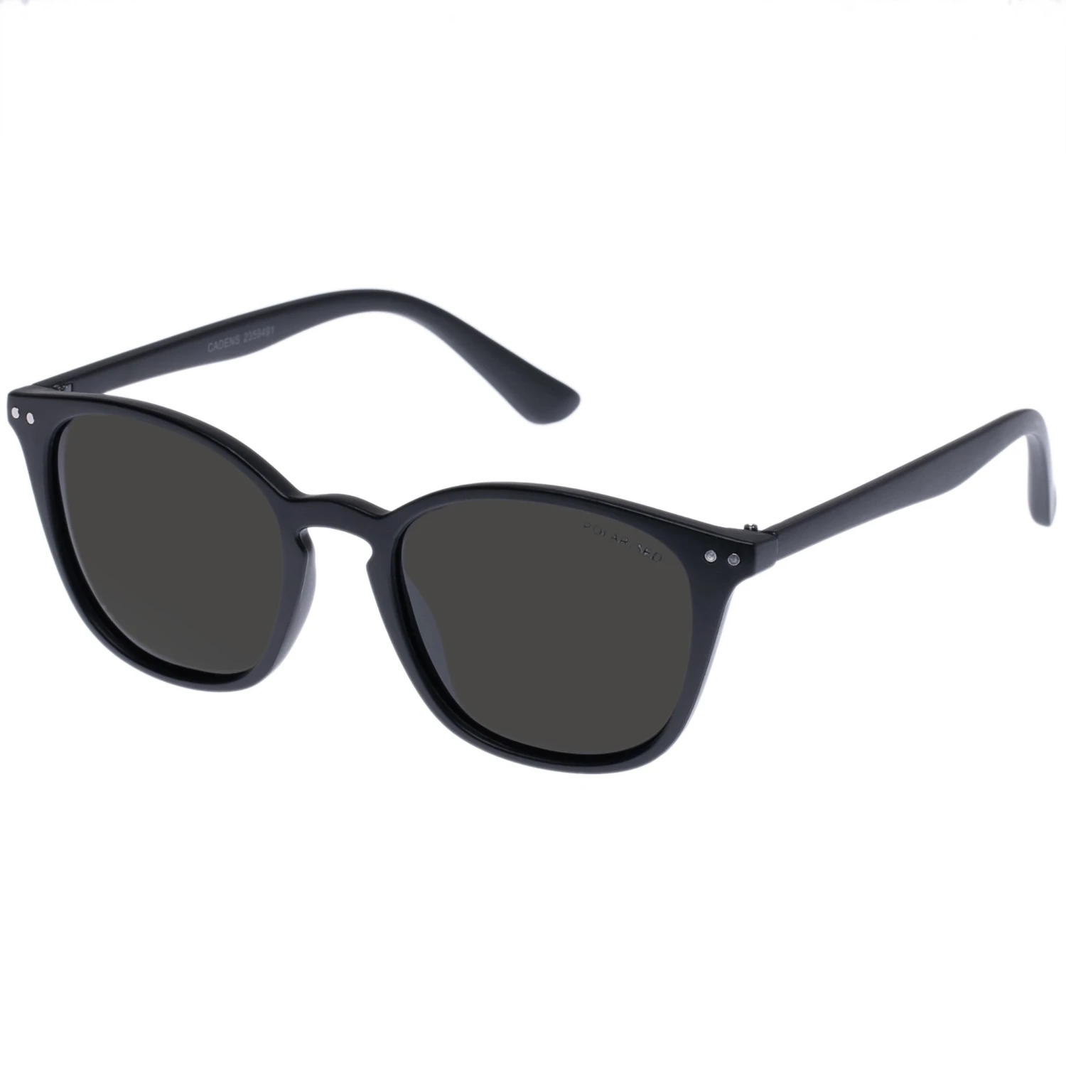 Cadens is a unisex eyewear style with a small-sized frame. Featuring matte black and gunmetal rivets, these sunglasses are equipped with smoke polarised lenses, helping to reduce glaring effects of the sun.