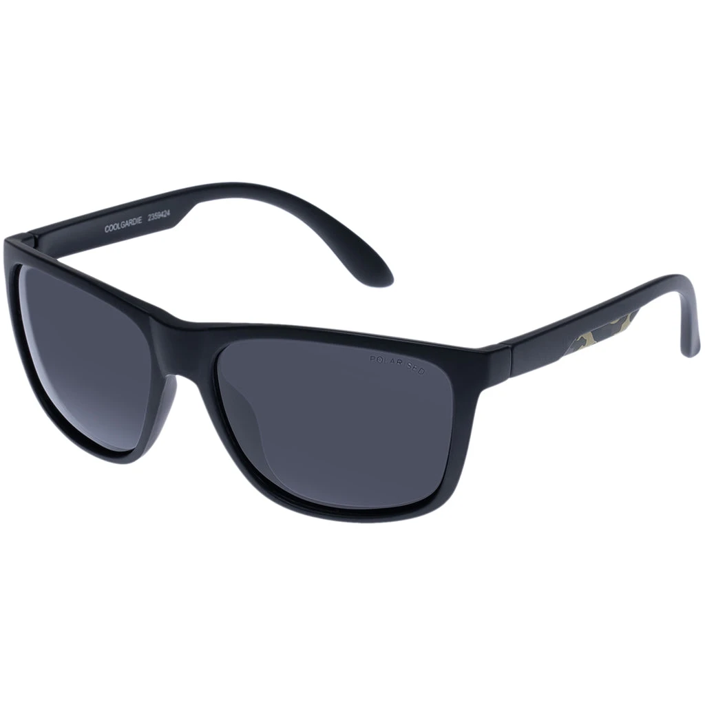 Coolgardie by Cancer Council are a modern rectangle style that are well suited to most face shapes. The matte black frames have a camo feature on the temple and they are fitted with polarised lenses.Â