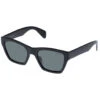 The Hallem in Black is a petite fitting rectangular frame features a classic shiny black front frame with subtle contrasting crystal navy temples. It has smoke polarised lenses.