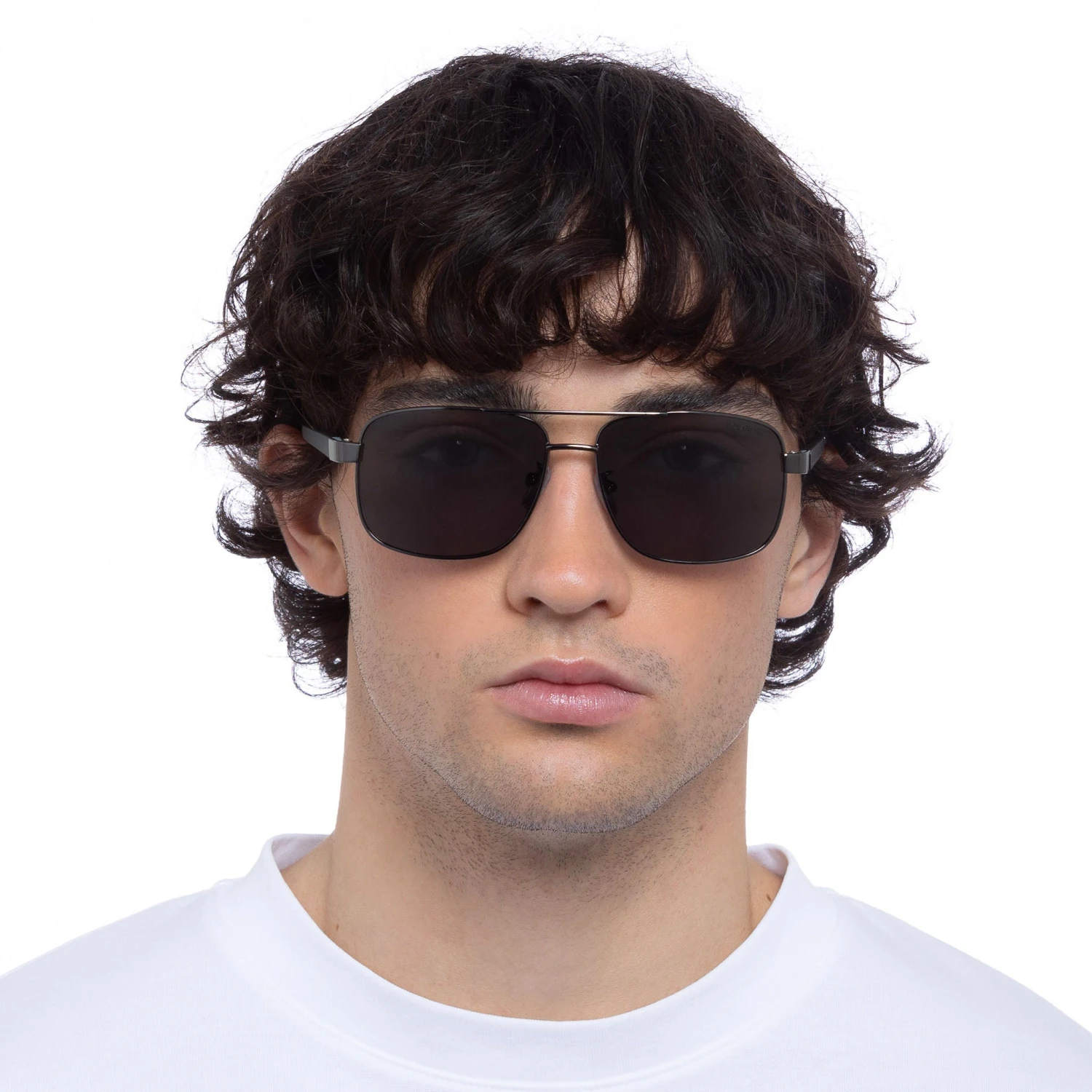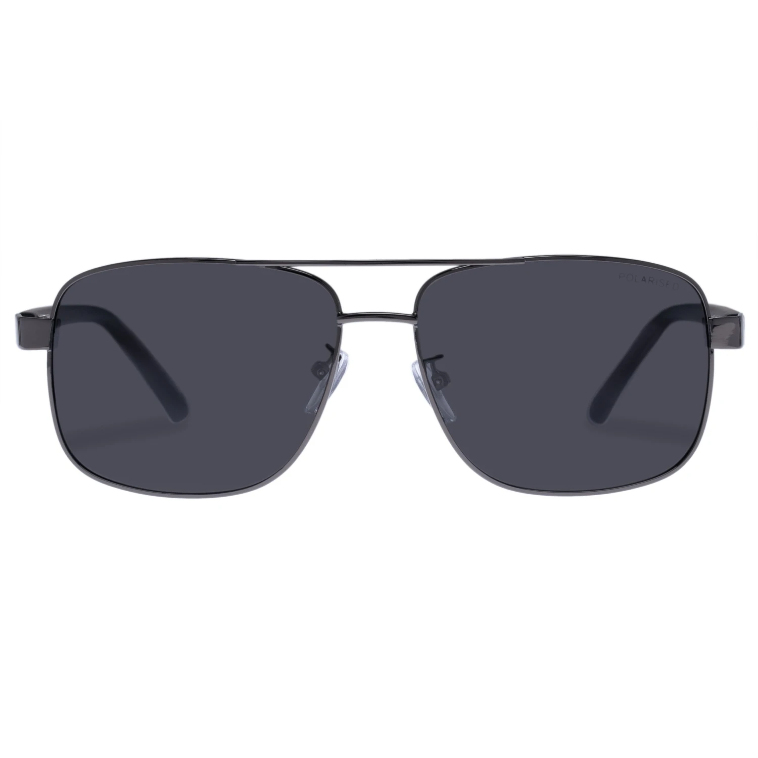The Narara sunglasses from Cancer Council are a medium-sized aviator design for men. The shiny dark metal front and matte metallic grey temple are paired with smoke polarised lenses, providing effective protection against sunglare.