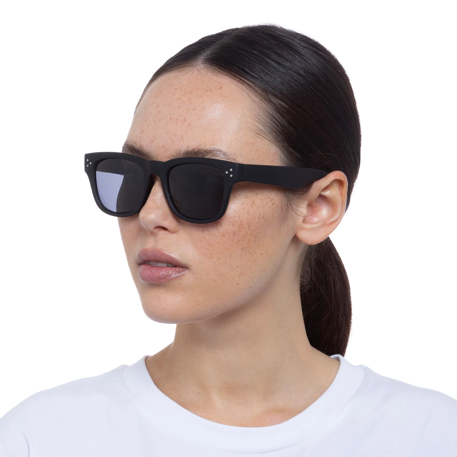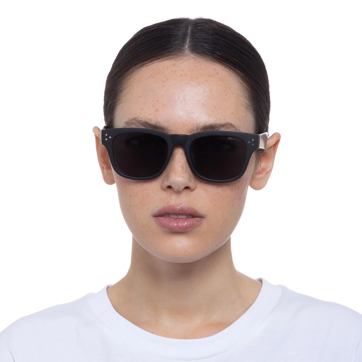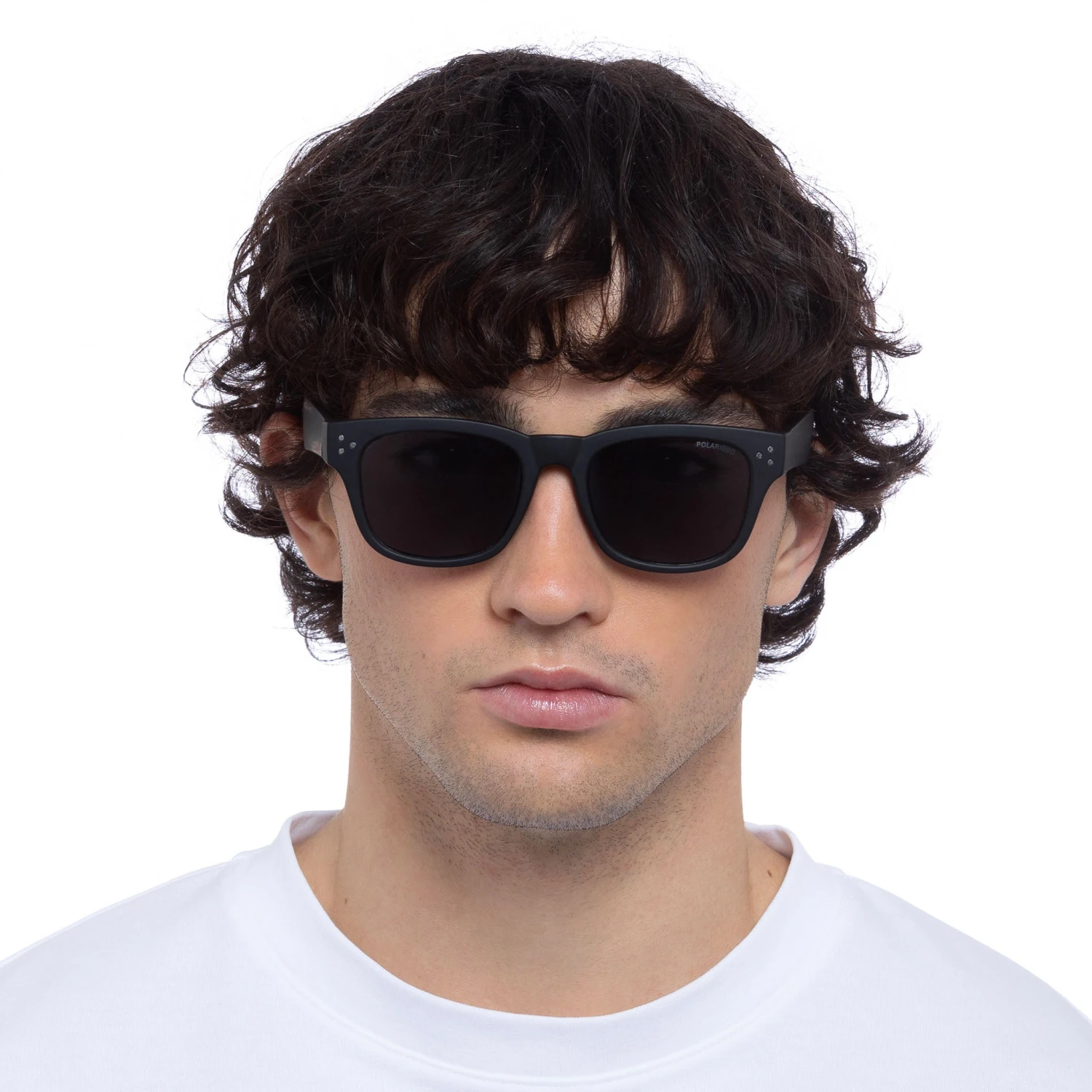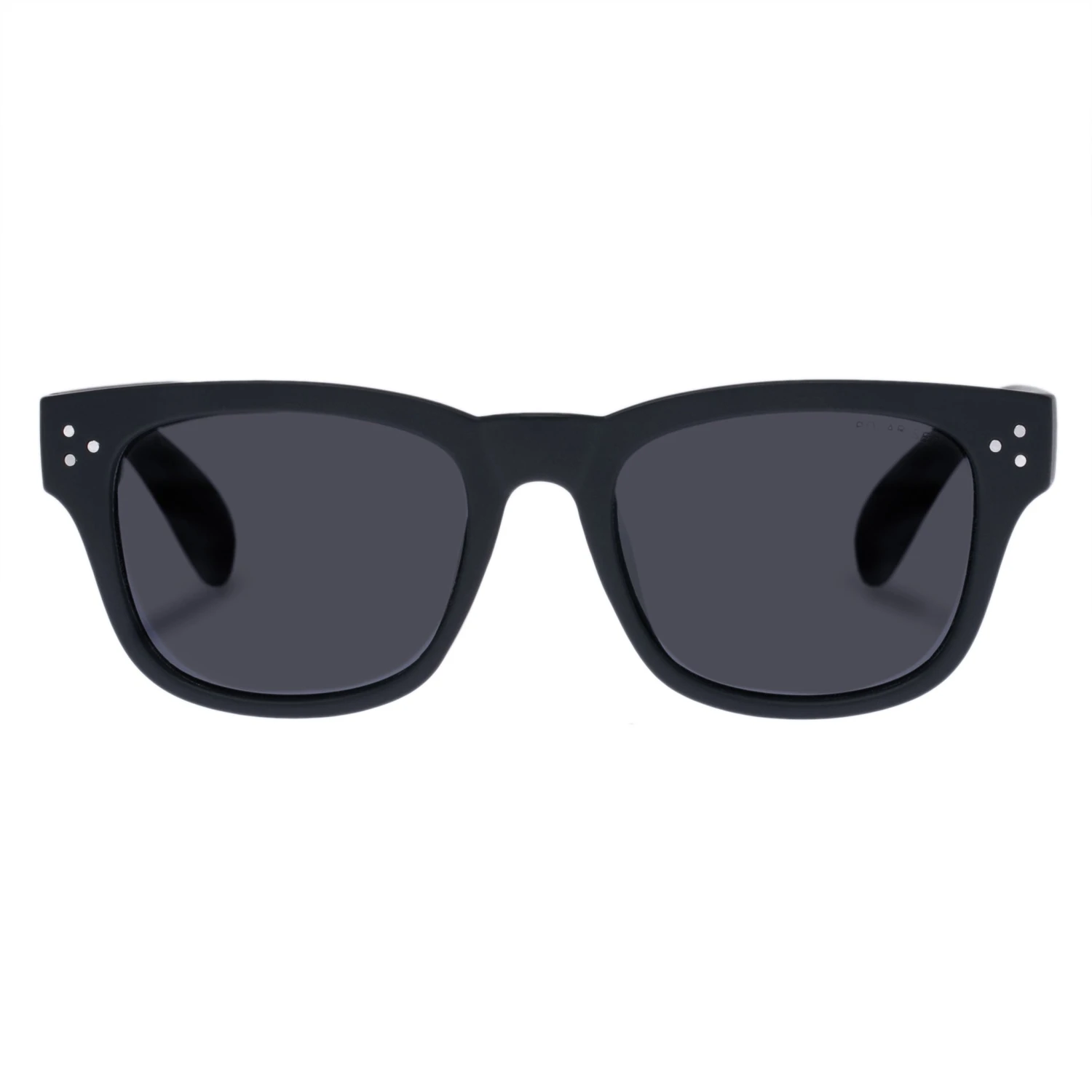 The Noddy Youth Sunglasses are designed for a unisex, small fit. With a rectangle shape in matte black and gunmetal rivets, the sunglasses feature smoke polarised lenses for reduced eye strain and glare. Enjoy comfortable, fashionable protection from the sun.