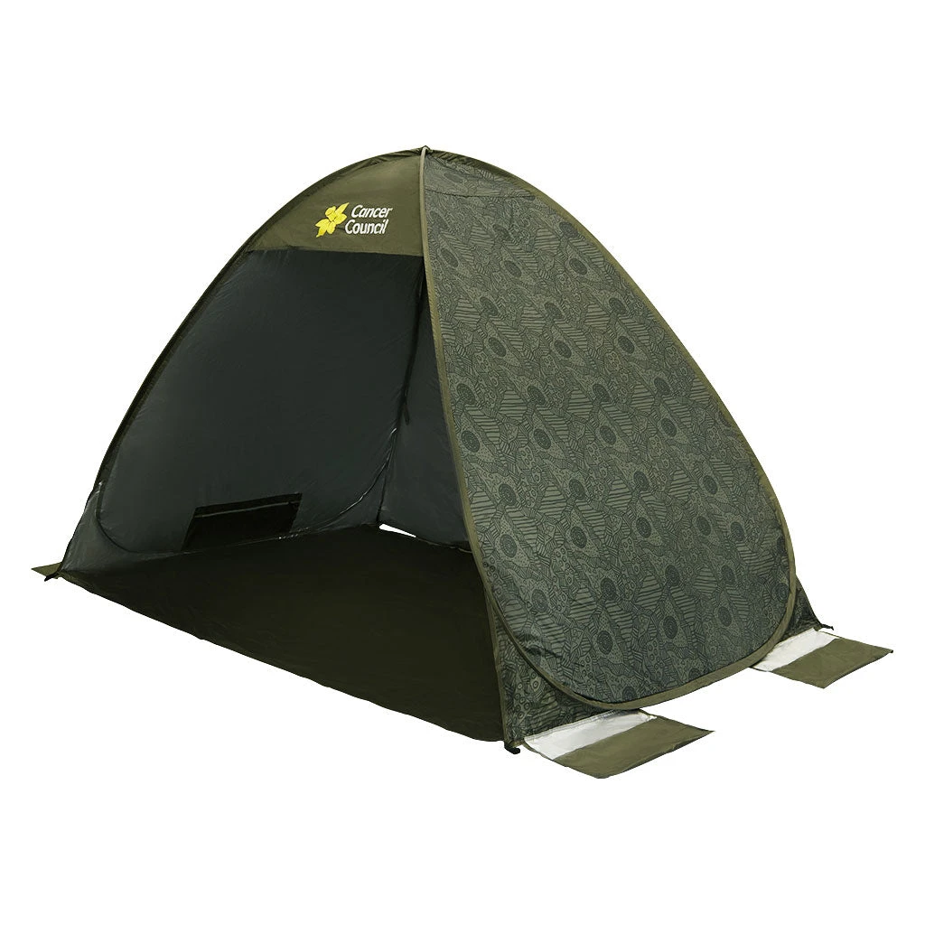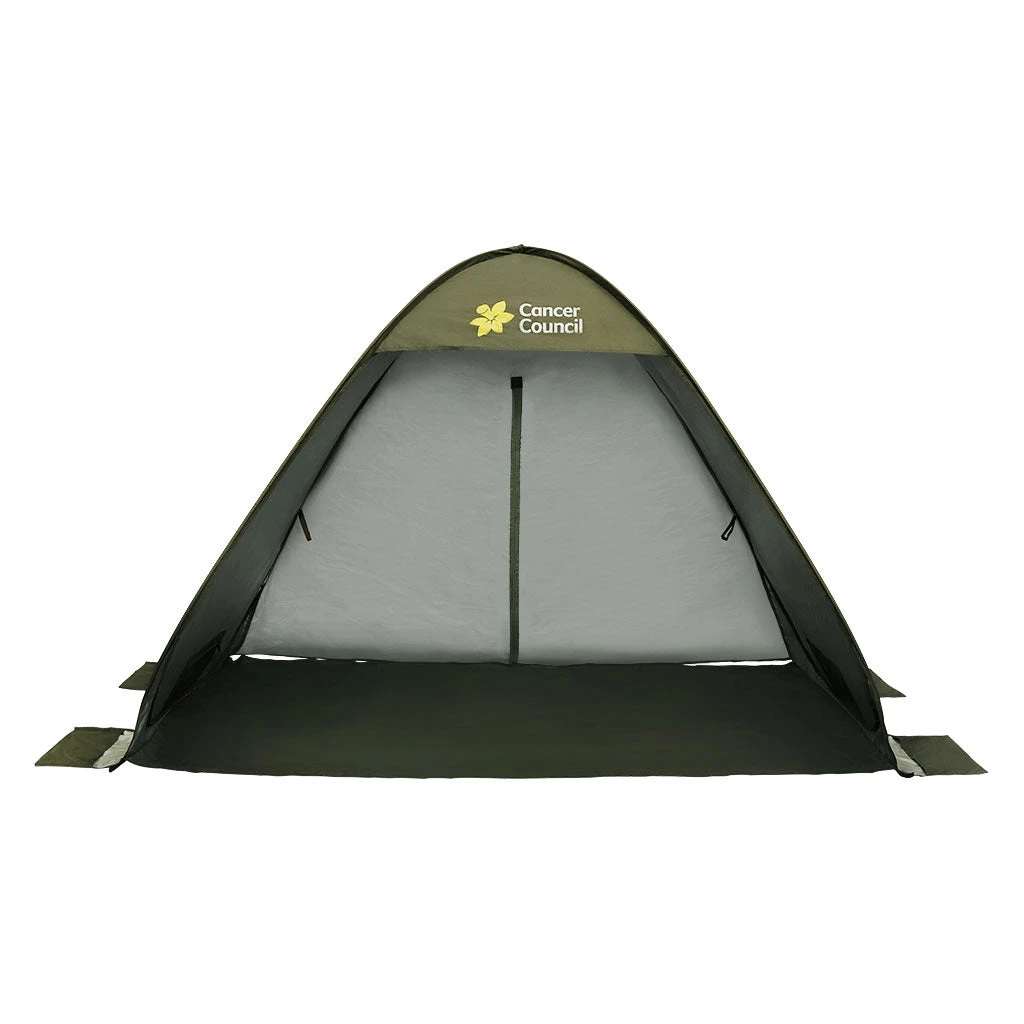Protect you and your family with the Journey of Hope Beach Cabana, designed by Riki Salam. This cabana simple to set up and easy to carry in its matching carry bag. It features fabric with a UVE rating of 99% (most effective) and is suitable on sand or grass. With cross ventilation, sand pockets and plastic pegs, the cabana is ideal for the beach, backyards and picnics.