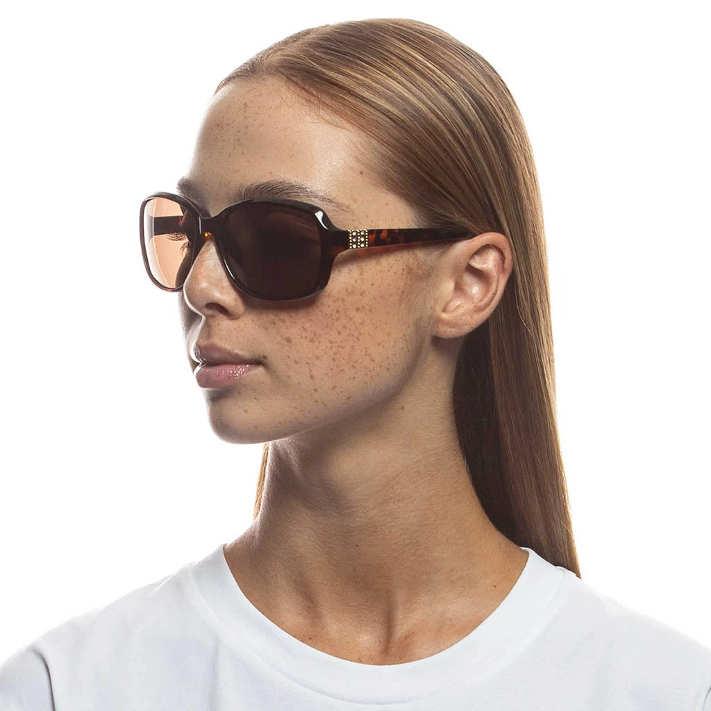 The Stapleton Sunglasses are a classic women’s wrap style with round lens. They are smart and will compliment any outfit while providing great sun protection. The Dark Tort colourway has gold detailing and features brown polarised lenses.